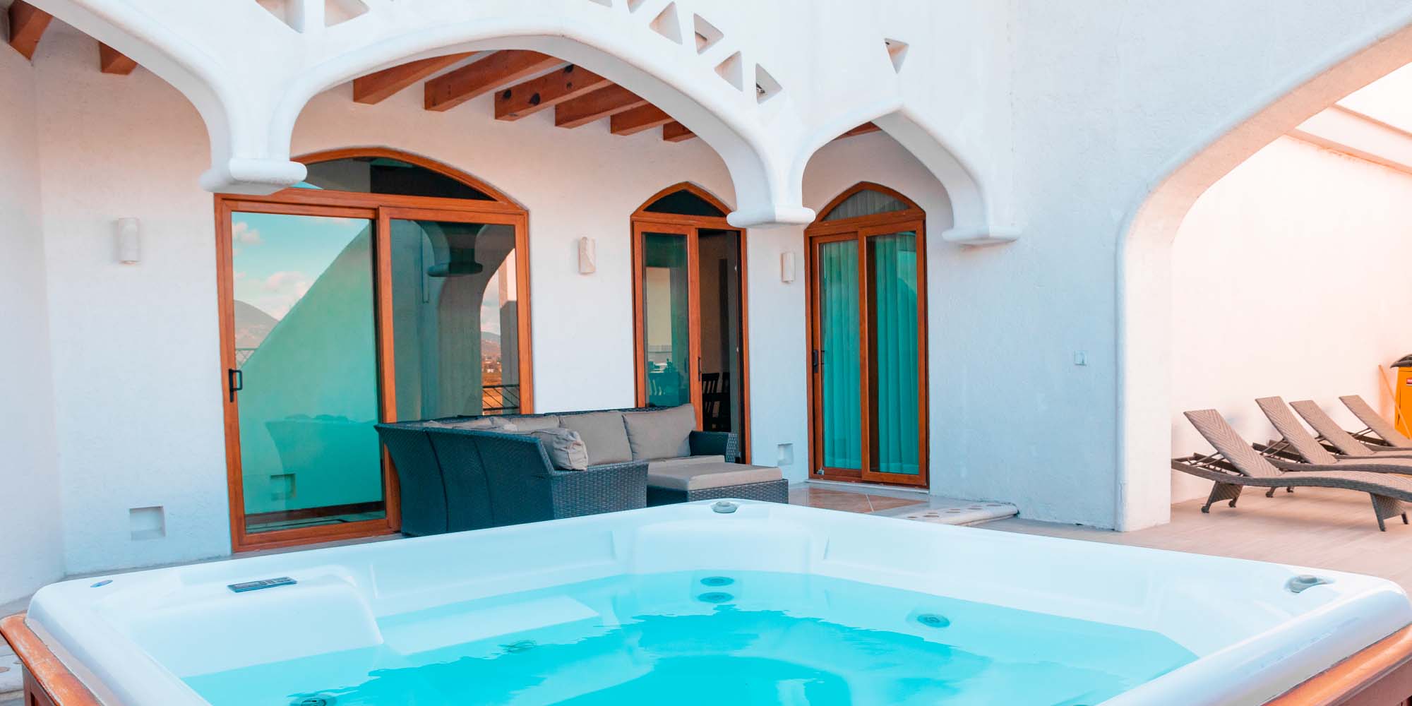 Disfruta momentos de relajación en la tina exterior o en la acogedora tina interior. Un espacio ideal para